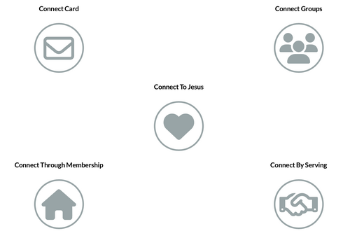 Connect5 are 5 points of connection at Connection Church. They are the Connect Card, Connect to Jesus, Connect Groups, Connect Through Membership, and Connect By Serving. We are the body of Christ, and it's His Will that we know, love, grow, and serve Him, and love one another.